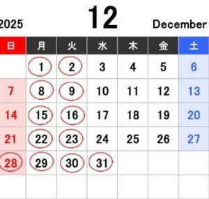 1日・2日・8日・9日・15日・16日・22日・23日・28日・29日・30日・31日