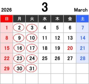 2026.3定休日